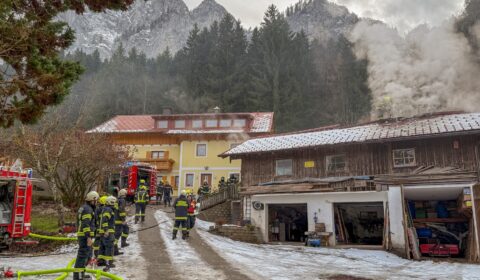 An der Drachenwand war es zu einem Brand in einem Werkstattgebäude gekommen. Nur wenige Meter entfernt vom Brandobjekt, steht das gerade neu renovierte Wohnhaus. Die ersteintreffenden Einsatzkräfte starten sofort einen Innen- und Außenangriff. Besonders gefordert waren die Atemschutzträger im Dachboden der Werkstatt, welche voll mit Dämmungsmaterial war. Das Durchkämpfen zum Brandherd war nur auf allen vieren möglich.