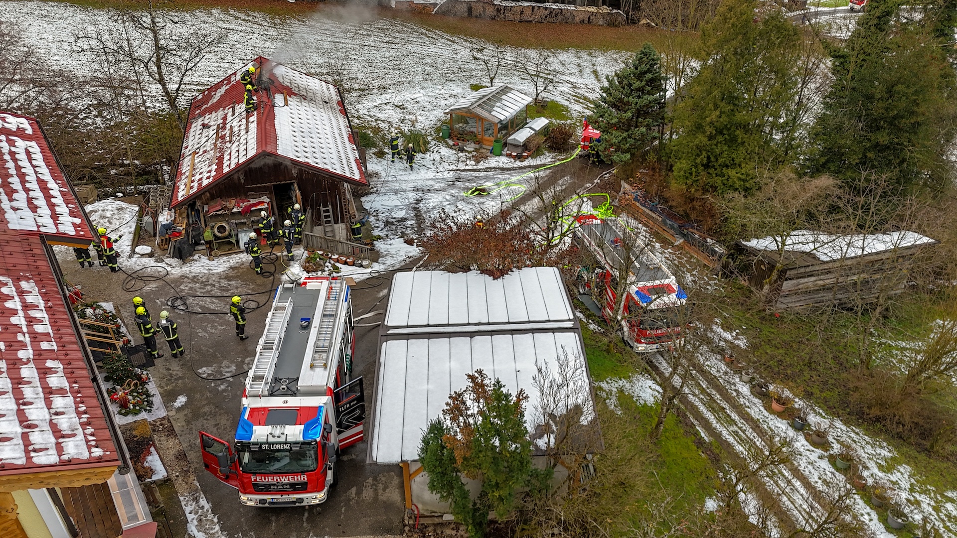 Am Samstag, 29.11.2025, wurden die Feuerwehren aus St. Lorenz und Keuschen um 13:15 Uhr mit dem Einsatzstichwort: „Brand Gebäude an der Drachenwand“ alarmiert.